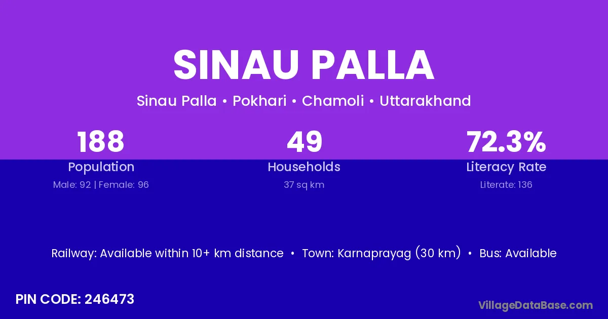 Karnaprayag (30 km) is the nearest town to Sinau Palla village for major economic activities and is located approximately 30 km away.