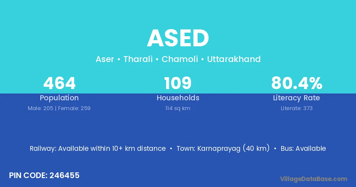 Karnaprayag (40 km) is the nearest town to Ased village for major economic activities and is located approximately 40 km away.