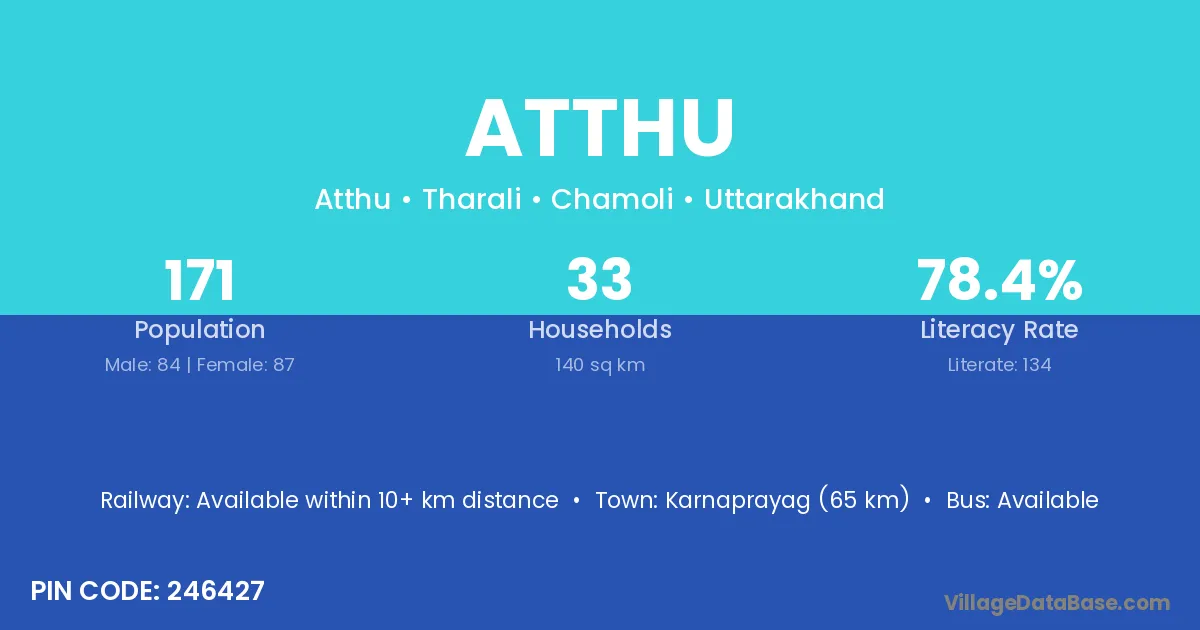 Karnaprayag (65 km) is the nearest town to Atthu village for major economic activities and is located approximately 65 km away.
