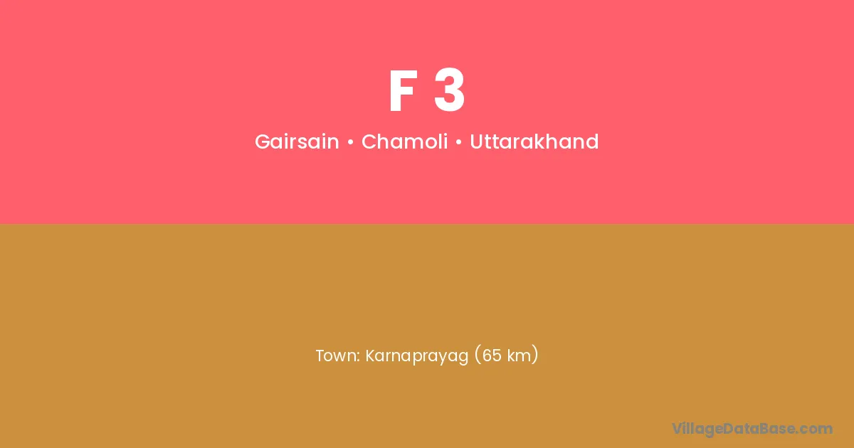 Karnaprayag (21 km) is the nearest town to F 3 village for major economic activities and is located approximately 21 km away.