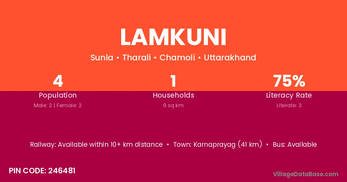 Lamkuni village is located in the Tharali Tehsil of the Chamoli district in Uttarakhand .