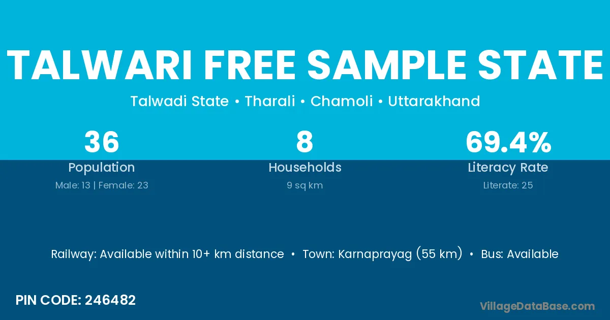 There are approximately 8 households in Talwari Free Sample State village.