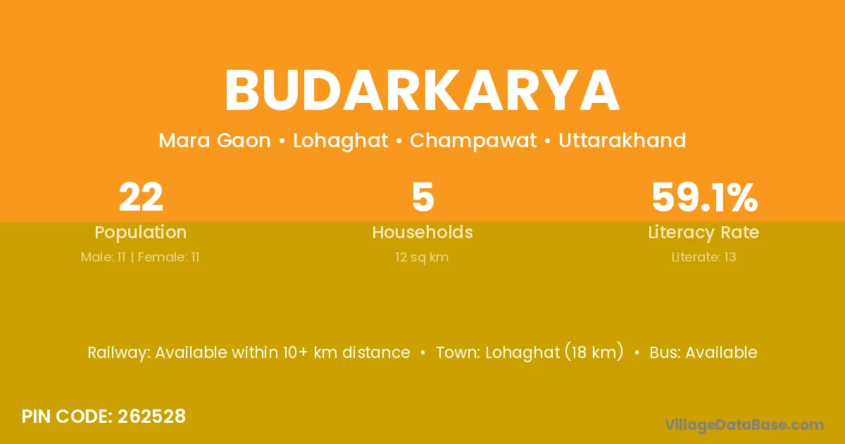 Lohaghat (18 km) is the nearest town to Budarkarya village for major economic activities and is located approximately 18 km away.