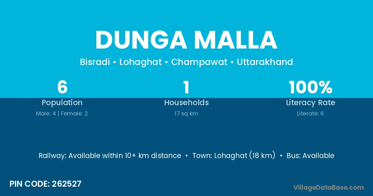 Lohaghat (18 km) is the nearest town to Dunga Malla village for major economic activities and is located approximately 18 km away.