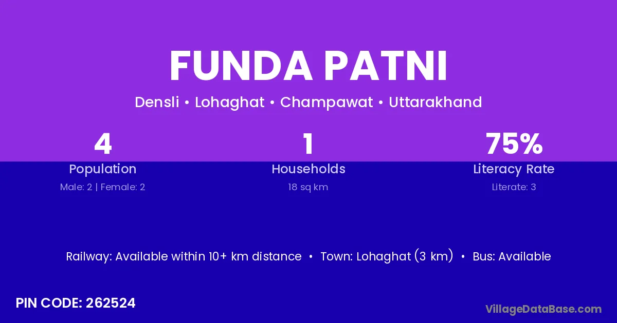 Lohaghat (3 km) is the nearest town to Funda Patni village for major economic activities and is located approximately 3 km away.