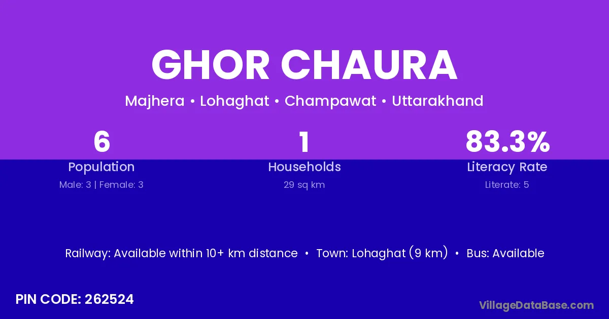 Ghor Chaura village has a total population of 6 people, of which 3 are males and 3 are females.