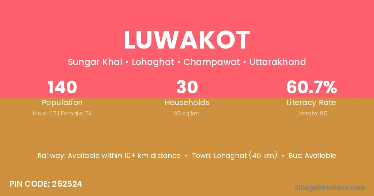 Luwakot village has a total population of 140 people, of which 67 are males and 73 are females.
