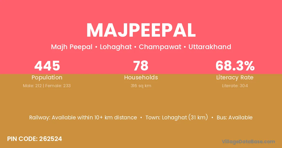 Lohaghat (31 km) is the nearest town to Majpeepal village for major economic activities and is located approximately 31 km away.