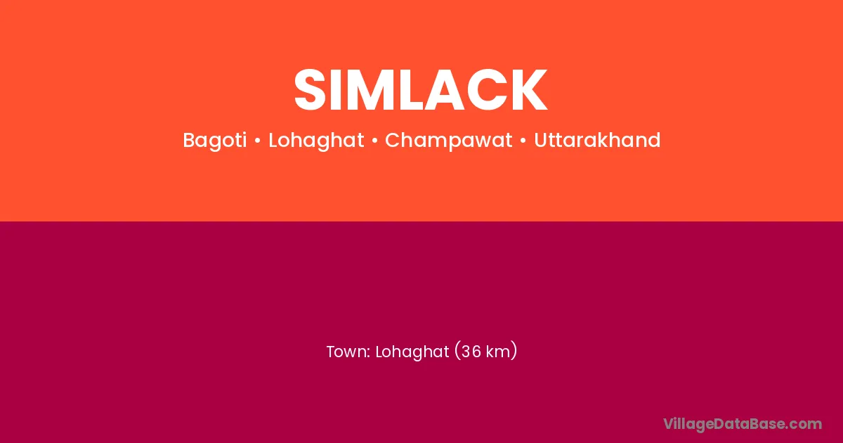 Lohaghat (36 km) is the nearest town to Simlack village for major economic activities and is located approximately 36 km away.