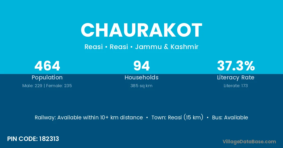 The literacy rate of Chaurakot village is 66.13%. Male literacy stands at 78.06% and female literacy at 52.51%.