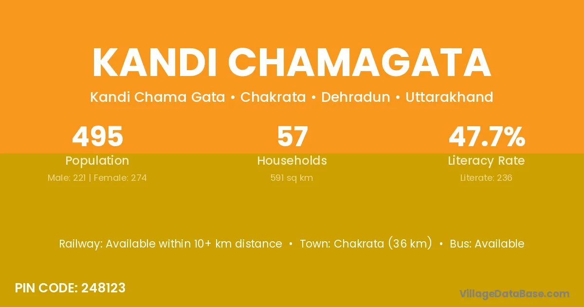 Kandi Chamagata village has a total population of 495 people, of which 221 are males and 274 are females.