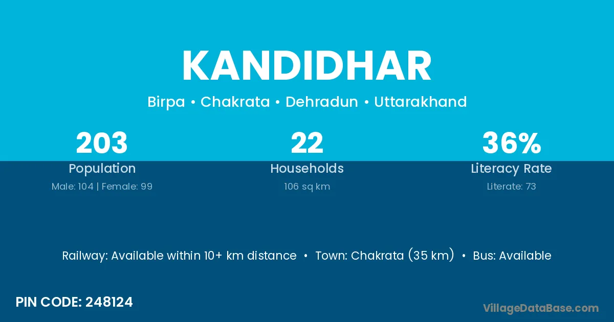 According to Census 2011 information, the village code of Kandidhar village is 248124.