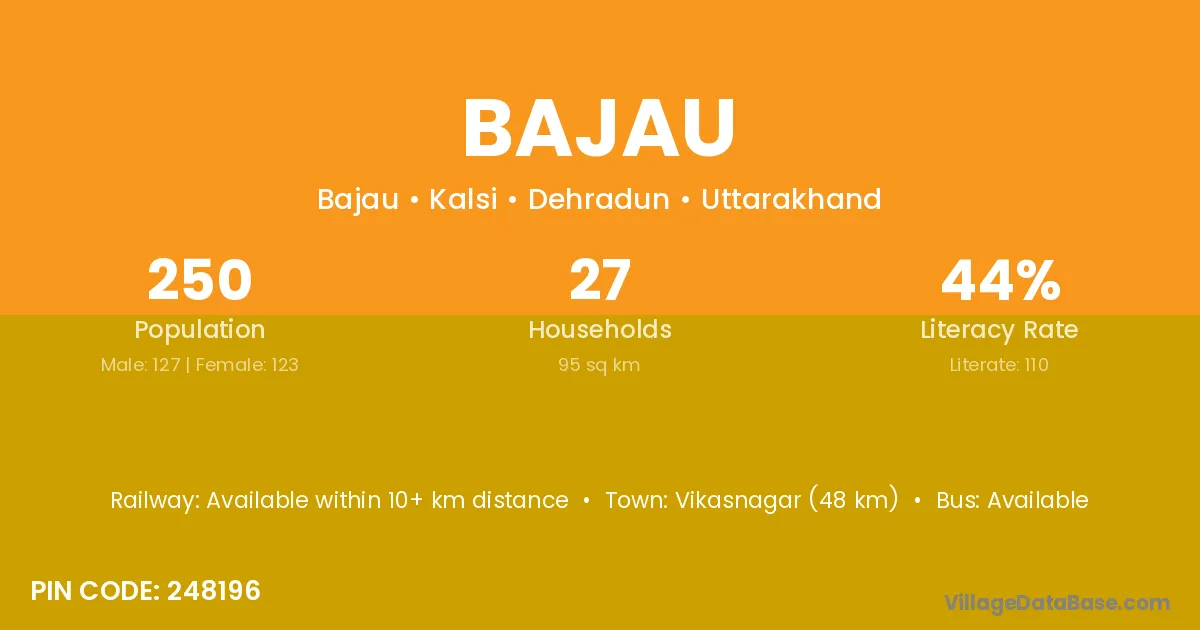 Vikasnagar (48 km) is the nearest town to Bajau village for major economic activities and is located approximately 48 km away.