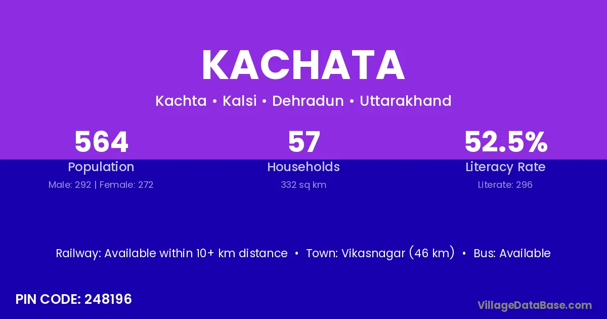 Vikasnagar (46 km) is the nearest town to Kachata village for major economic activities and is located approximately 46 km away.
