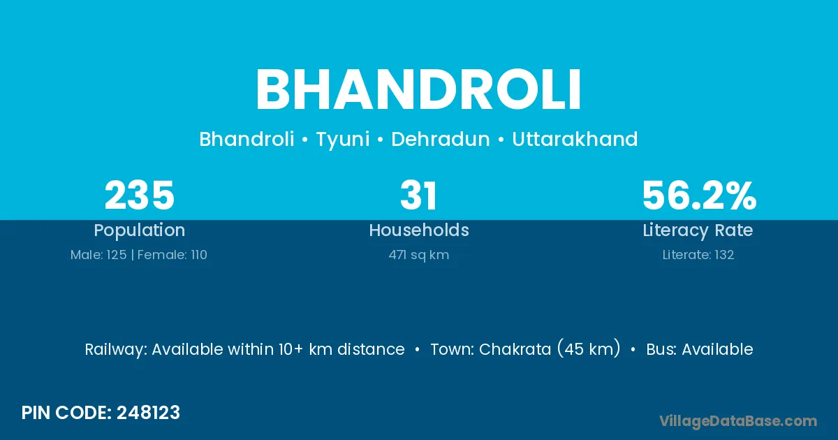 According to Census 2011 information, the village code of Bhandroli village is 248123.