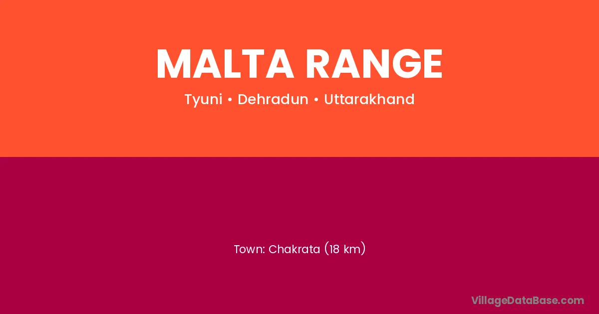 Chakrata (18 km) is the nearest town to Malta Range village for major economic activities and is located approximately 18 km away.