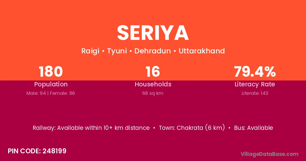 According to Census 2011 information, the village code of Seriya village is 248199.