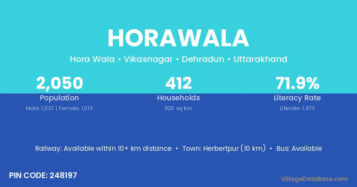 Herbertpur (10 km) is the nearest town to Horawala village for major economic activities and is located approximately 10 km away.