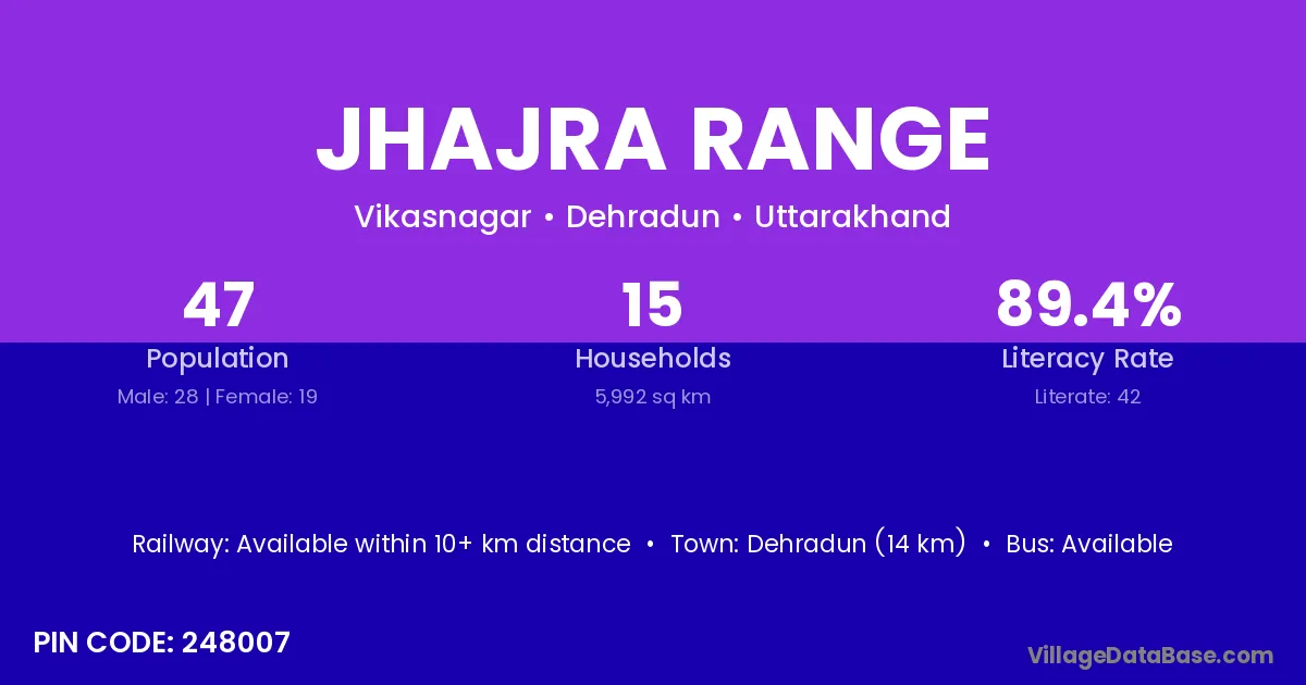 Dehradun (14 km) is the nearest town to Jhajra Range village for major economic activities and is located approximately 14 km away.