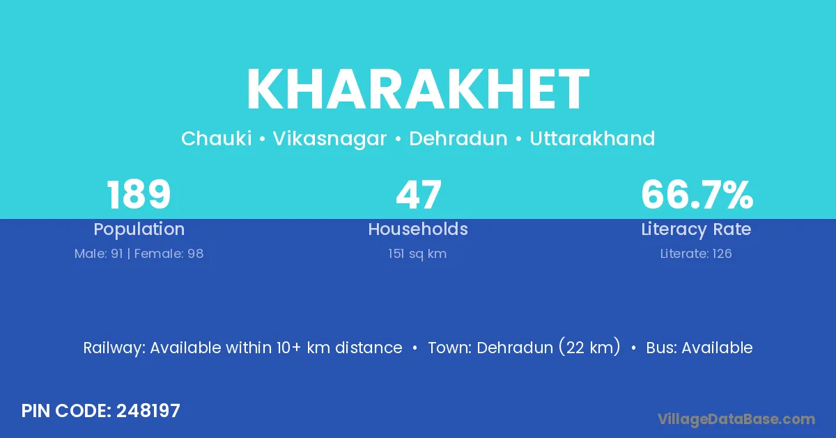 Kharakhet village has a total population of 189 people, of which 91 are males and 98 are females.