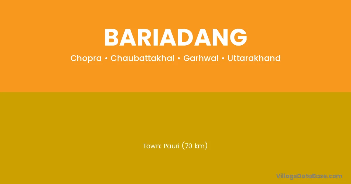 Pauri (70 km) is the nearest town to Bariadang village for major economic activities and is located approximately 70 km away.