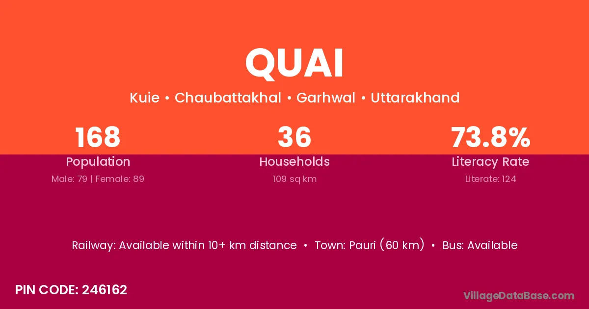 Pauri (60 km) is the nearest town to Quai village for major economic activities and is located approximately 60 km away.