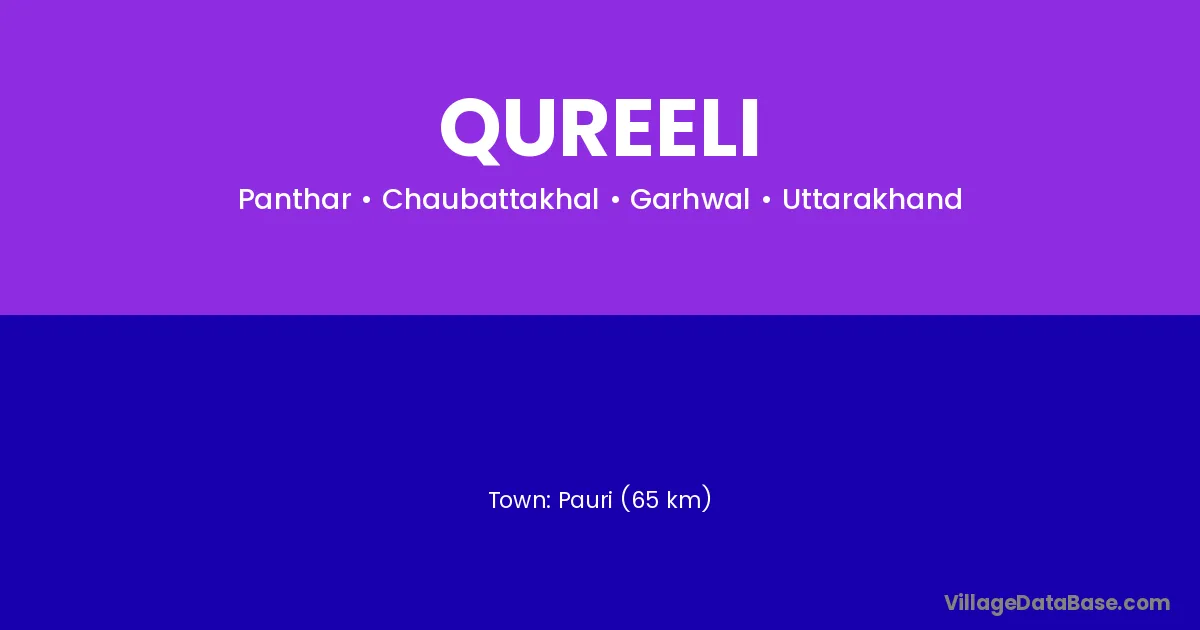 Pauri (65 km) is the nearest town to Qureeli village for major economic activities and is located approximately 65 km away.