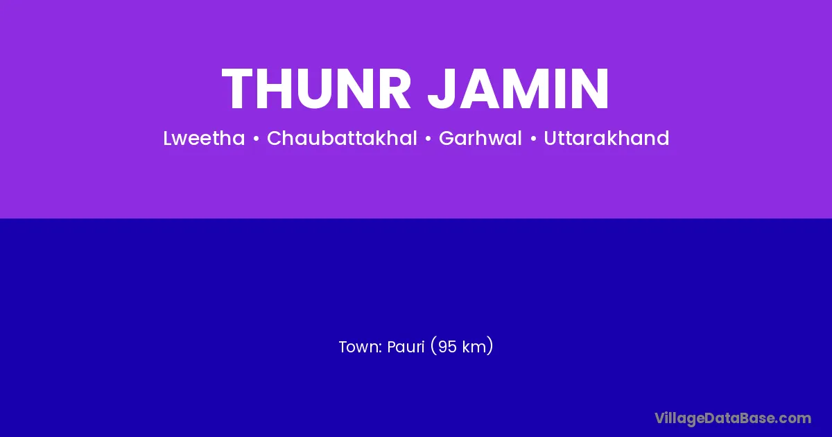 Pauri (95 km) is the nearest town to Thunr Jamin village for major economic activities and is located approximately 95 km away.
