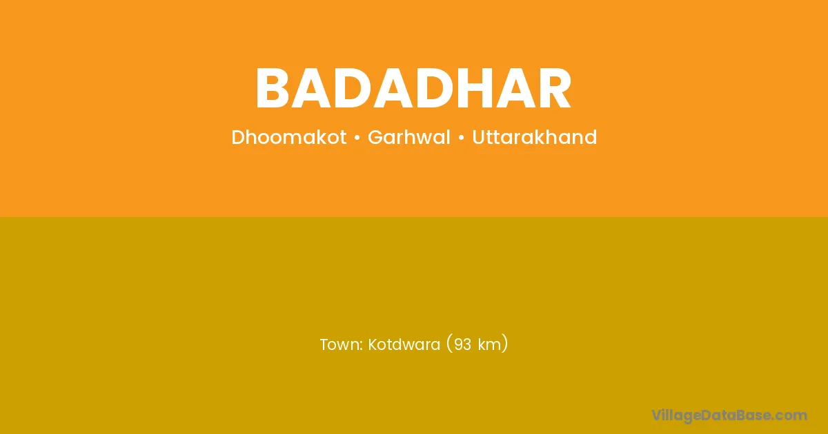 Kotdwara (93 km) is the nearest town to Badadhar village for major economic activities and is located approximately 93 km away.