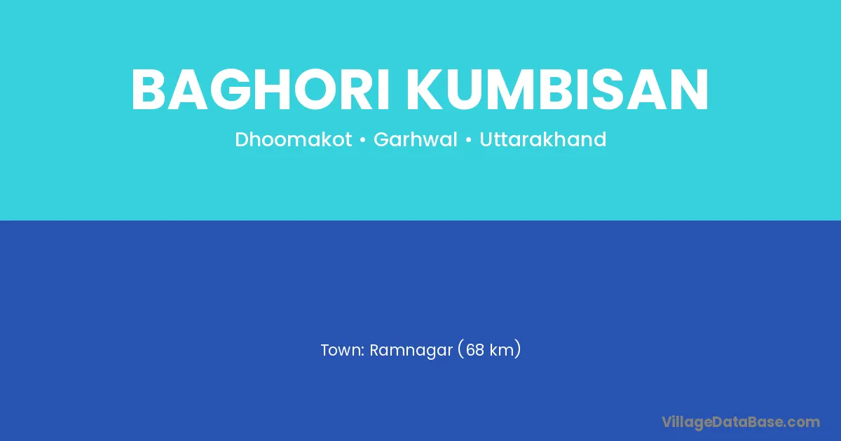Ramnagar (68 km) is the nearest town to Baghori Kumbisan village for major economic activities and is located approximately 68 km away.