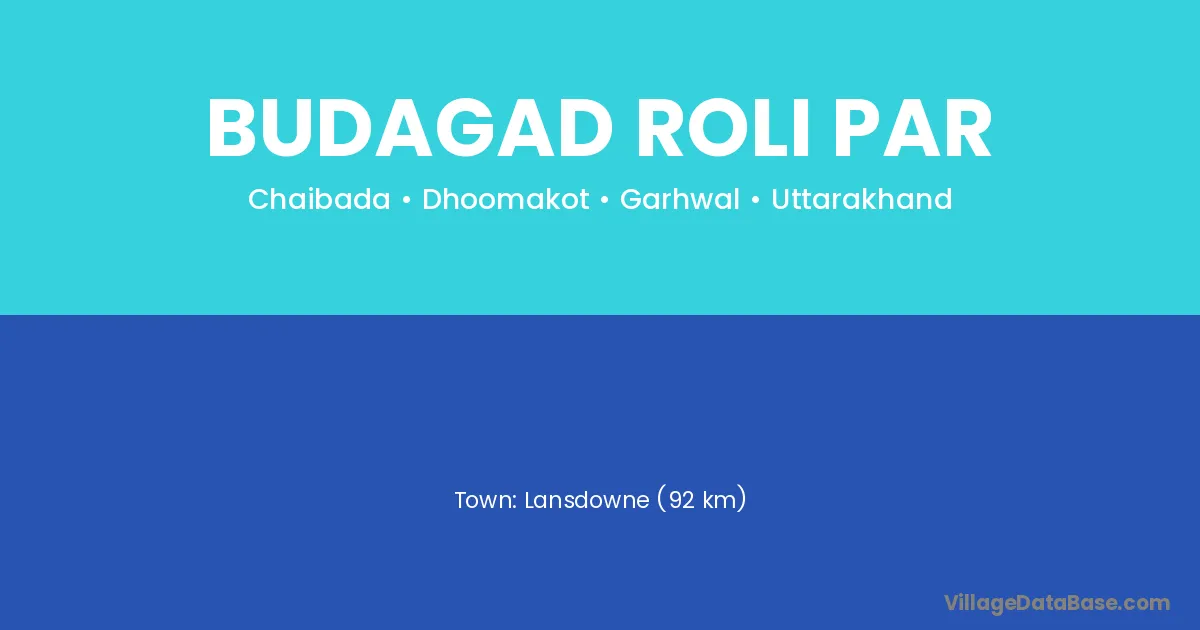 Lansdowne (92 km) is the nearest town to Budagad Roli Par village for major economic activities and is located approximately 92 km away.