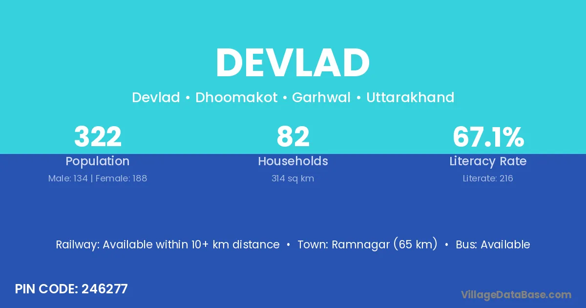 Ramnagar (65 km) is the nearest town to Devlad village for major economic activities and is located approximately 65 km away.