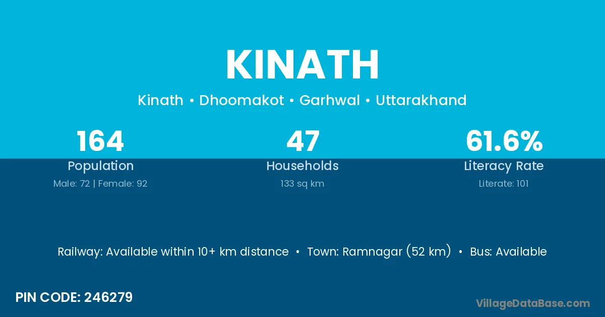 Ramnagar (52 km) is the nearest town to Kinath village for major economic activities and is located approximately 52 km away.