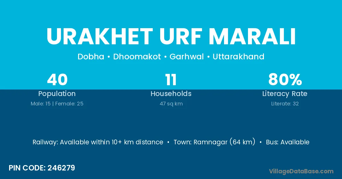 Ramnagar (64 km) is the nearest town to Urakhet Urf Marali village for major economic activities and is located approximately 64 km away.