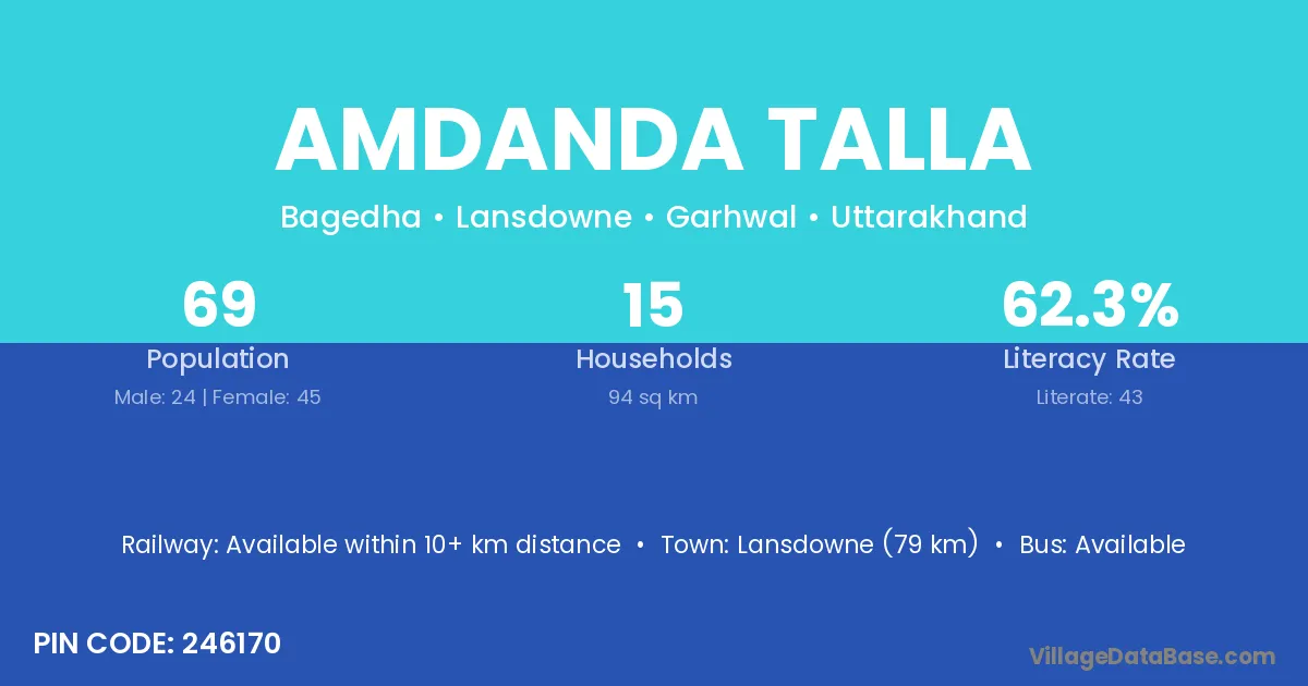 Lansdowne (79 km) is the nearest town to Amdanda Talla village for major economic activities and is located approximately 79 km away.