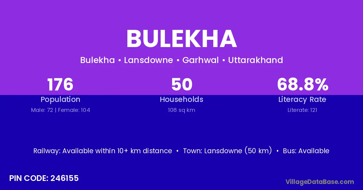 Lansdowne (50 km) is the nearest town to Bulekha village for major economic activities and is located approximately 50 km away.