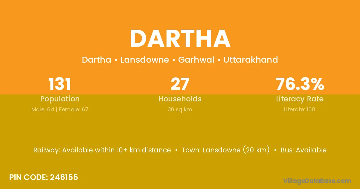 Lansdowne (20 km) is the nearest town to Dartha village for major economic activities and is located approximately 20 km away.