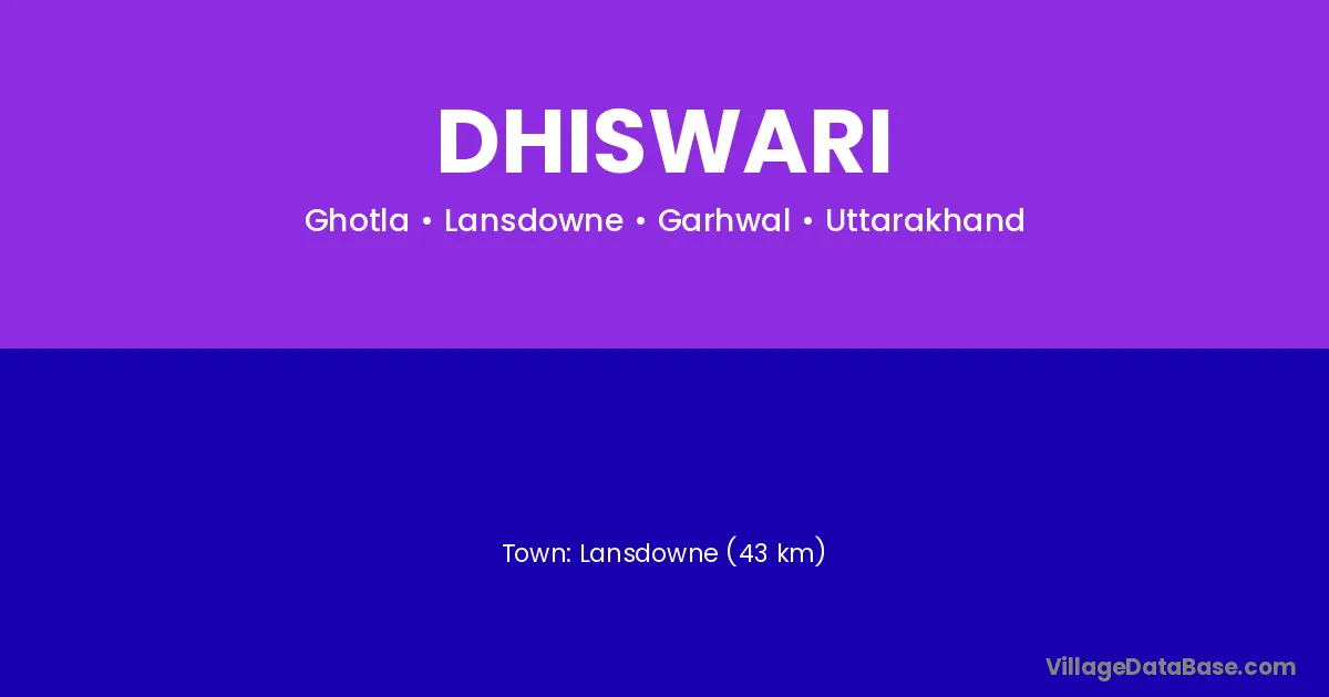Lansdowne (43 km) is the nearest town to Dhiswari village for major economic activities and is located approximately 43 km away.