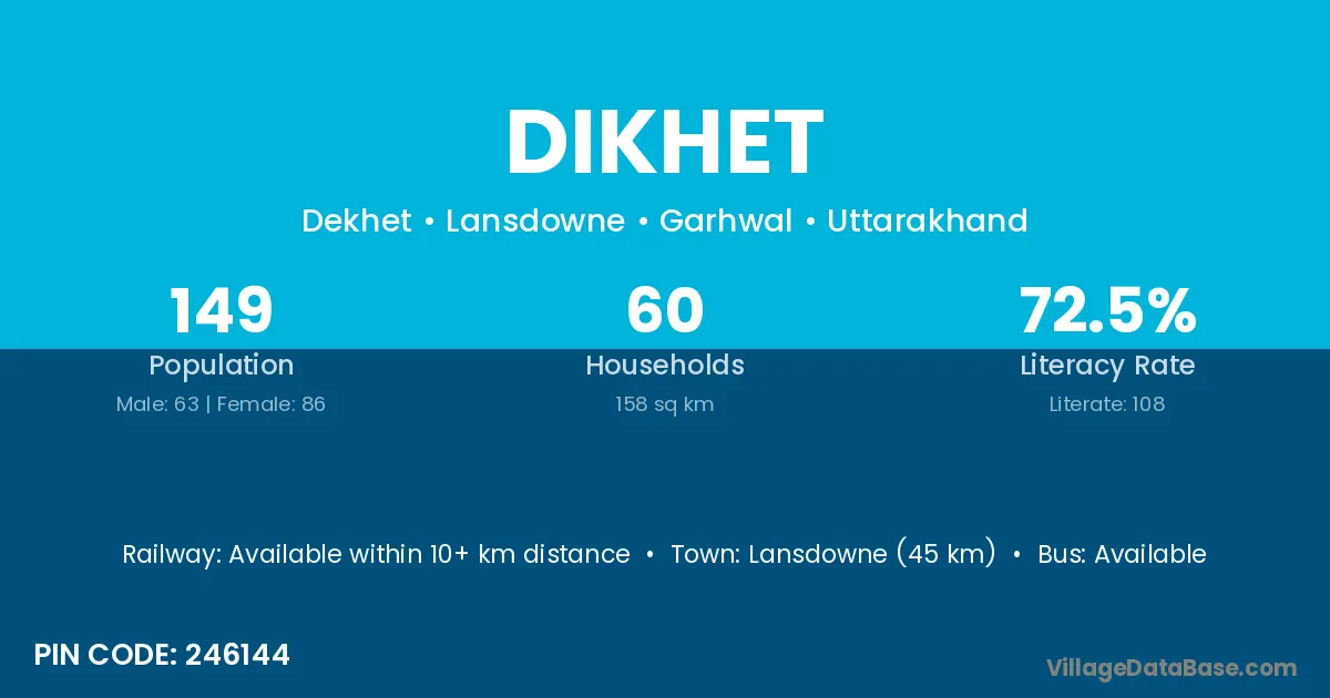 Lansdowne (45 km) is the nearest town to Dikhet village for major economic activities and is located approximately 45 km away.