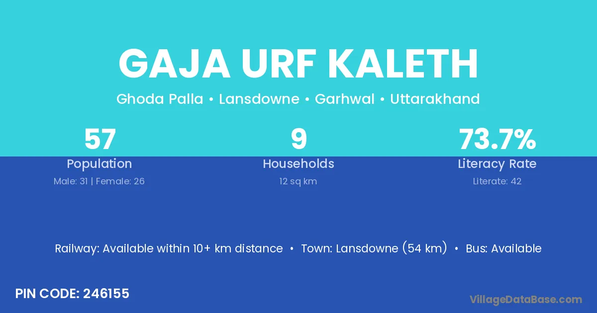 Lansdowne (54 km) is the nearest town to Gaja Urf Kaleth village for major economic activities and is located approximately 54 km away.
