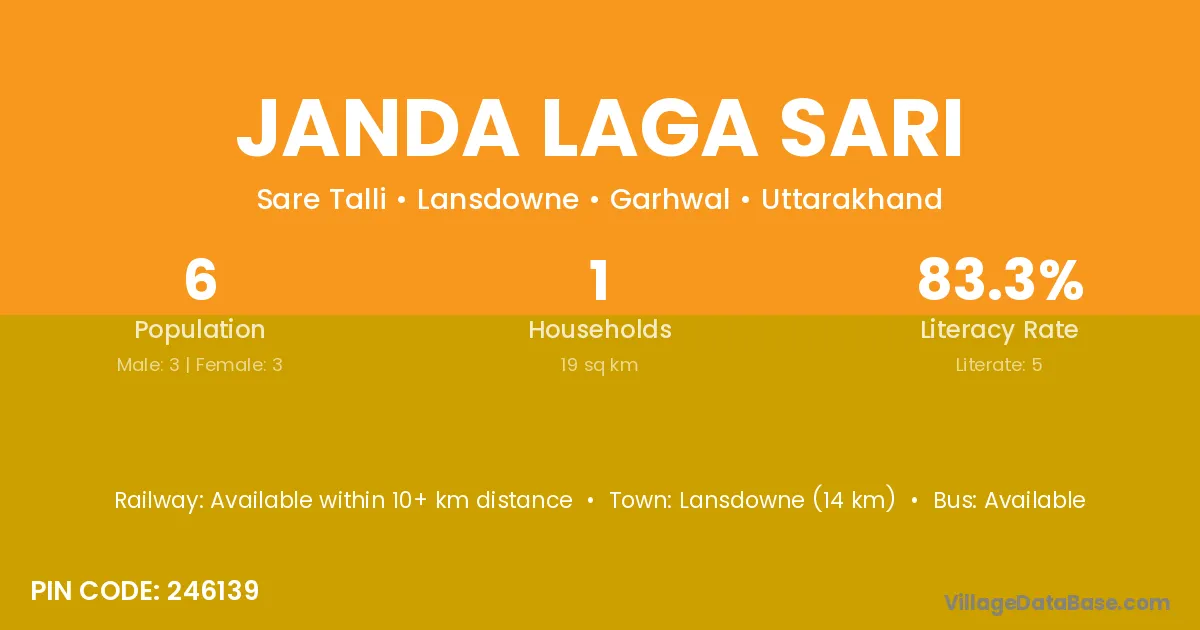 Lansdowne (14 km) is the nearest town to Janda Laga Sari village for major economic activities and is located approximately 14 km away.