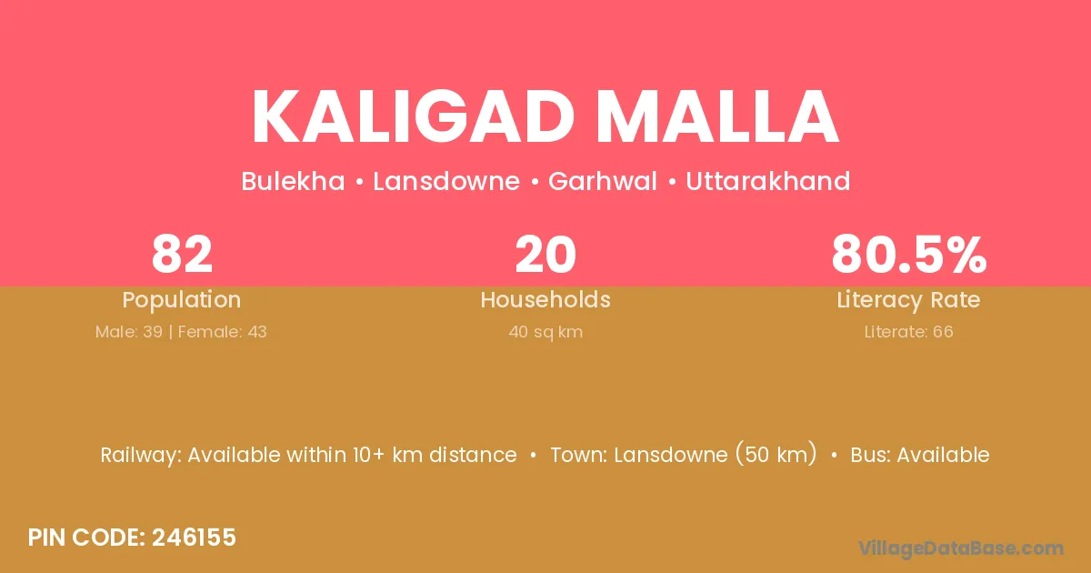 Kaligad Malla village has a total population of 82 people, of which 39 are males and 43 are females.