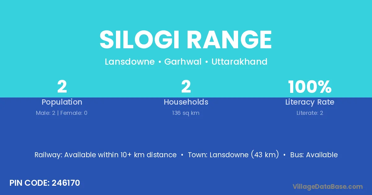 Lansdowne (43 km) is the nearest town to Silogi Range village for major economic activities and is located approximately 43 km away.