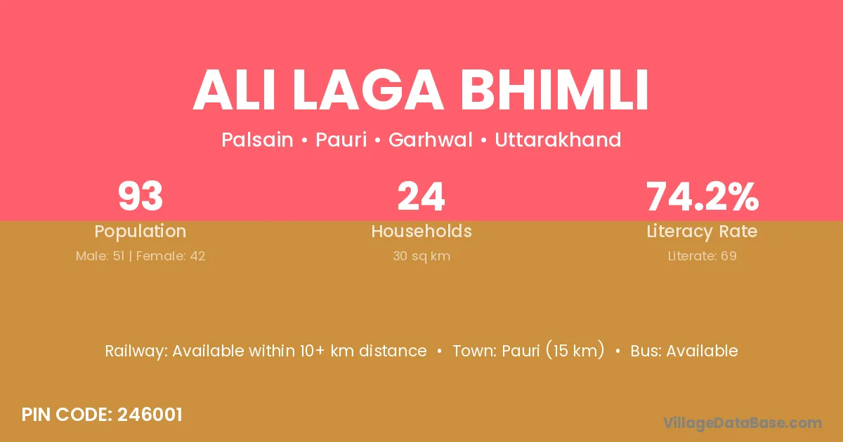Ali Laga Bhimli village has a total population of 93 people, of which 51 are males and 42 are females.