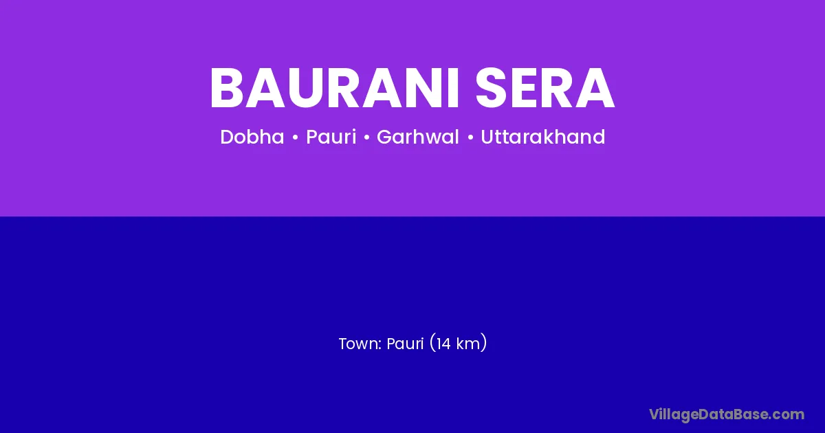 Pauri (14 km) is the nearest town to Baurani Sera village for major economic activities and is located approximately 14 km away.