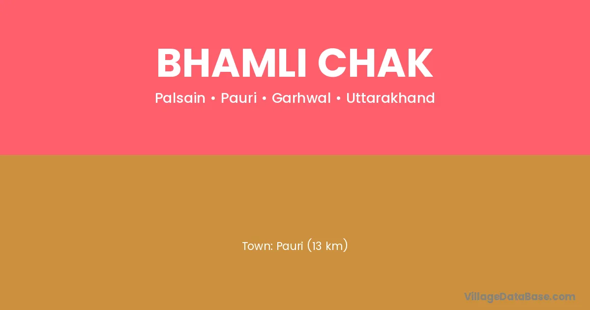 Pauri (13 km) is the nearest town to Bhamli Chak village for major economic activities and is located approximately 13 km away.