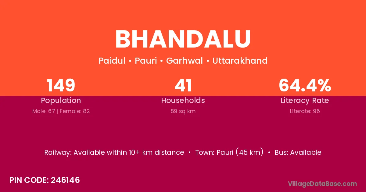 Pauri (45 km) is the nearest town to Bhandalu village for major economic activities and is located approximately 45 km away.