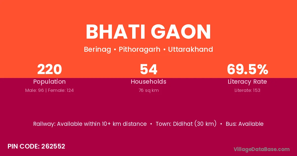 Pauri (40 km) is the nearest town to Bhati Gaon village for major economic activities and is located approximately 40 km away.