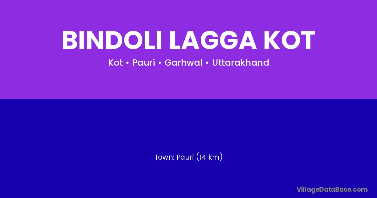 Pauri (14 km) is the nearest town to Bindoli Lagga Kot village for major economic activities and is located approximately 14 km away.