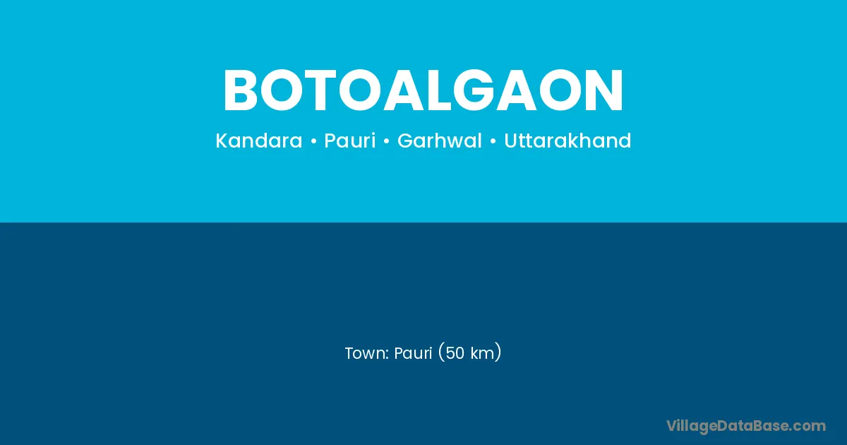 Pauri (50 km) is the nearest town to Botoalgaon village for major economic activities and is located approximately 50 km away.